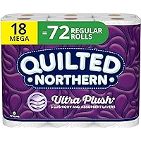 Quilted Northern Ultra Plush Toilet Paper, 3 Ply Bath Tissue, Mega Rolls, 18 Count of 284 Sheets Per Roll