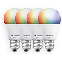SYLVANIA Smart+ Wi-Fi Full Color Dimmable A19 LED Light Bulb, CRI 90+, 60W Equivalent, Works with Alexa and Google Assistant, 4 Pack