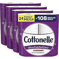 Cottonelle Ultra ComfortCare Toilet Paper with Cushiony CleaningRipples, 24 Family Mega Rolls, Soft Bath Tissue (24 Family Mega Rolls = 108 Regular Rolls)