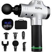 Massage Gun Deep Tissue Percussion Muscle Massager for Pain Relief,Handheld Electric Body Massager Sports Drill Portable Super Quiet Brushless Motor, 30Speeds Percussion Massage X3Pro(Silver)