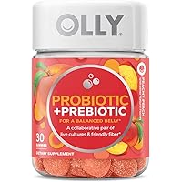 OLLY Probiotic + Prebiotic Gummy, 30 Day Supply (30 Gummies), Peachy Peach, Probiotics, Live Cultures, Prebiotic Fiber, Chewable Supplement