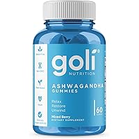 ASHWA Vitamin Gummy by Goli Nutrition - Ashwagandha and Vitamin D Gummies - Relax. Restore. Unwind. (Mixed Berry, KSM-66, Vegan, Plant Based, Non-GMO, Gluten-Free & Gelatin Free - 60 Count)
